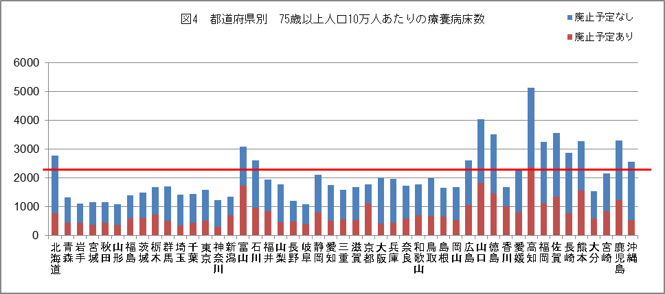 療養病床入院患者の75%以上が75歳以上であったため、75歳以上人口10万人あたりで計算しました