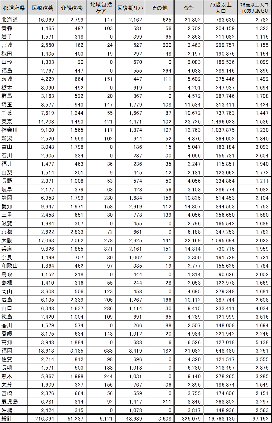 療養病床 全国で325,079床 算定病床34%が転換対象