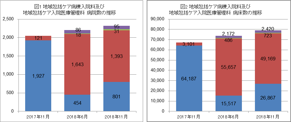 2018 年度診療報酬改定で実績要件が設けられた地域包括ケア1 は、改定直後の2018 年6 月時点では病院数・病床数ともに大幅に減少したものの、2018 年11 月時点になると増加傾向が見られた(図1、図2)。
