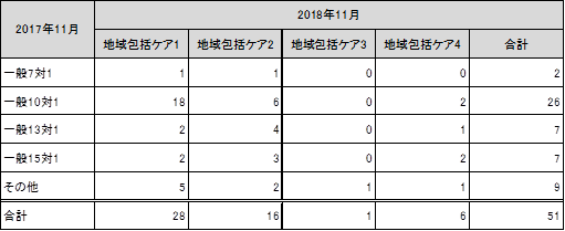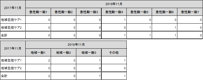 また、2017 年11 月時点から2018 年11 月時点までの間に地域包括ケア病棟から一般病棟入院基本料へ転換した病院が7 病院あり、3 病院が急性期一般入院基本料へ、3 病院が地域一般入院基本料へ、1 病院がその他の一般病棟入院基本料へ転換していた(表2)。