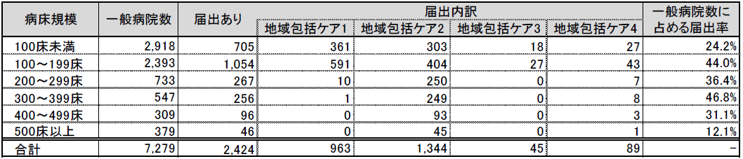 表1 病床規模別の地域包括ケア病床 届出状況※