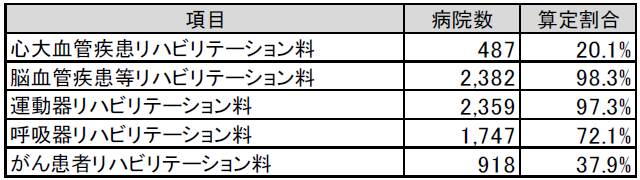 表2 リハビリテーション料の算定状況