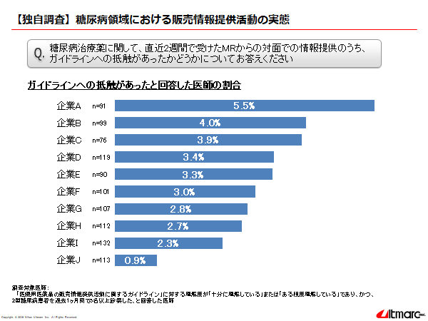 一方で、弊社の独自調査によると、約3%の医師は過去2週間に不適切なディテールを受けた、と回答しており、医療用医薬品市場においては不適切なディテールが一定数存在している可能性が示唆されております。