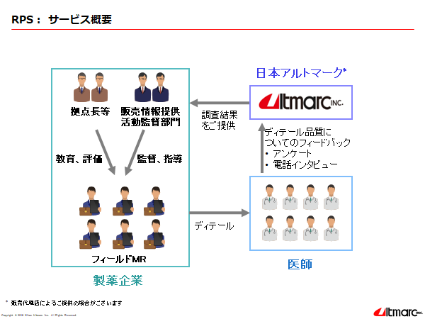 株式会社日本アルトマーク(以下、日本アルトマーク、東京都港区・代表取締役社長 梅田友彦)は、製薬企業各社様の販売情報提供活動についての現状を調査した上でスコア化し、同活動の更なる適正化推進を支援するサービスとして「ライトプロモーションスコア(RPS)」の提供を開始いたしました。