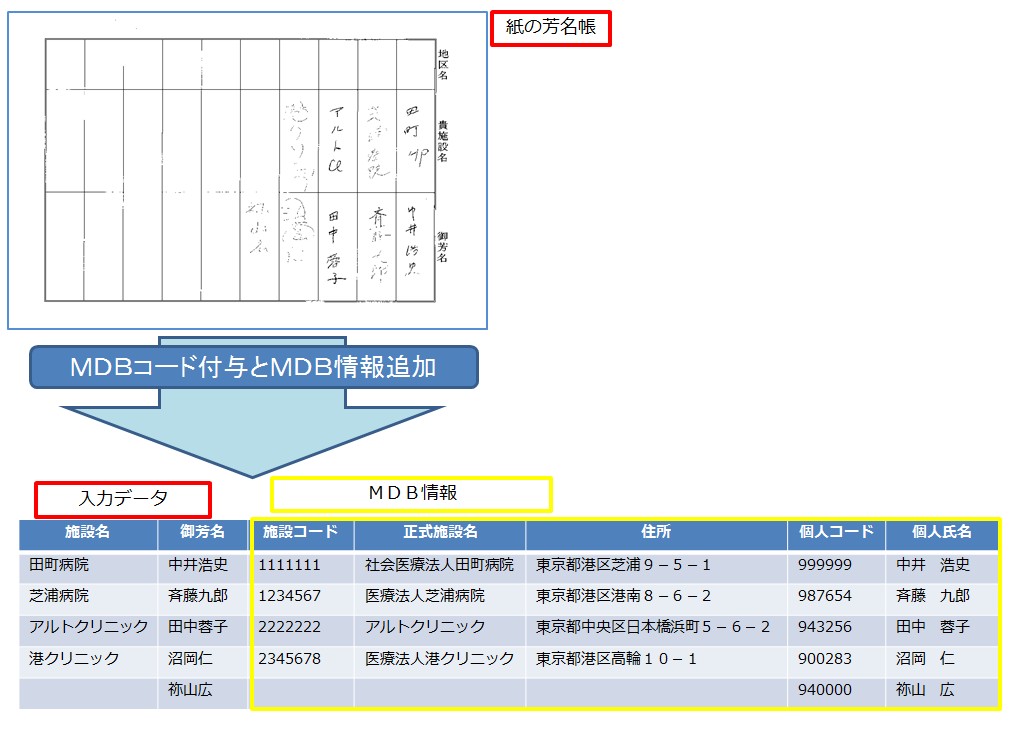 ■ 事例2:芳名帳をデータ化してMDBコードを付与